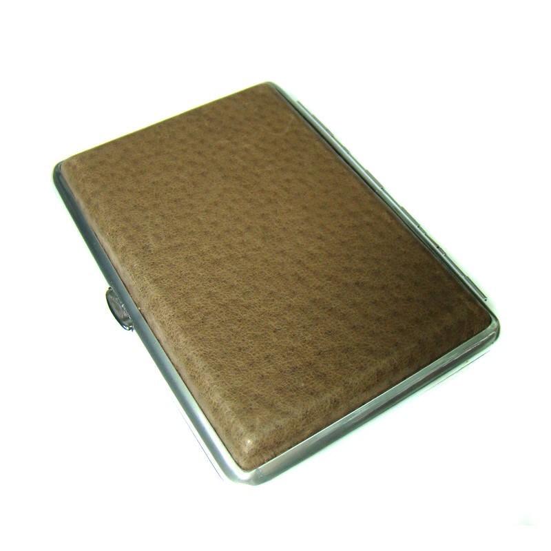 Ταμπακιέρα με εξωτερική επένδυση Δέρμα καφε ανοιχτο Ανοξείδωτη Pierre Cardin