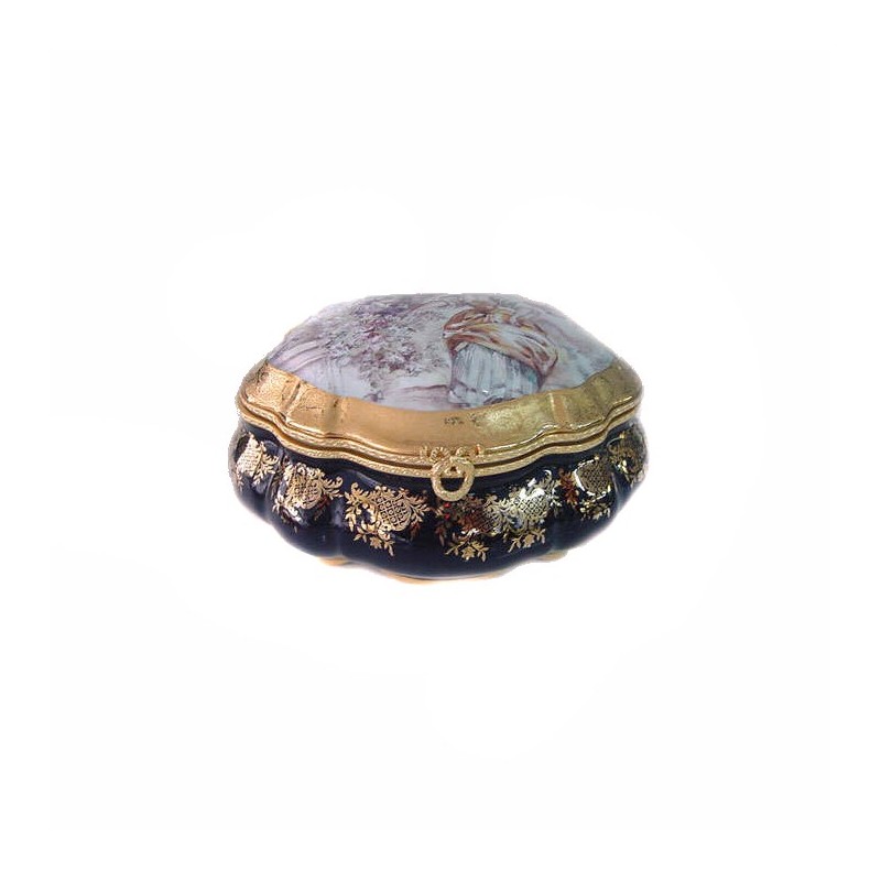 Φοντανιέρα από γνήσια πορσελάνη Limoges Σειρά Μπλέ ζωγραφισμένη μέ τό χέρι καί μέ 22 ct χρυσό.Διαστάσεις 20 χ 15 εκ.