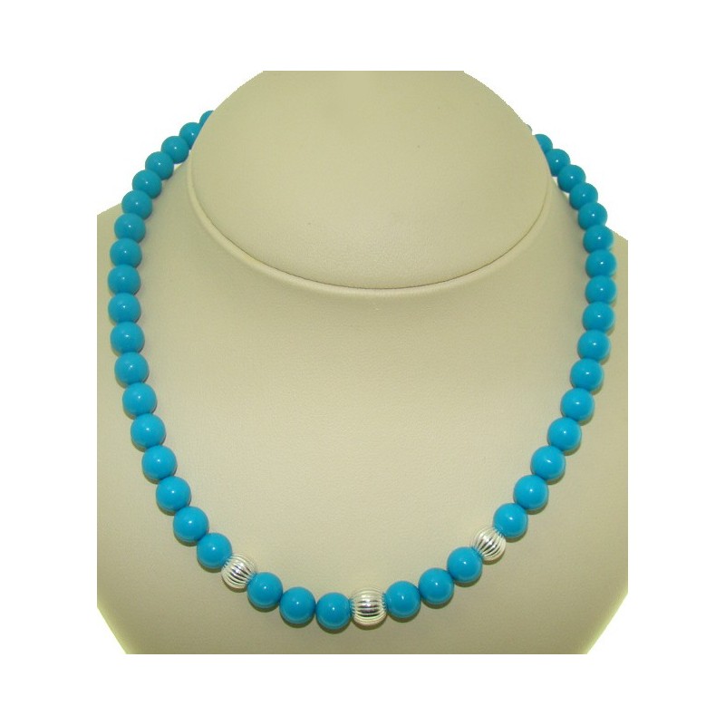 Κολιέ από Τυρκουάζ ( Turquoise ) καί ασημένιες χάντρες ,ασημένιο κούμπωμα ,