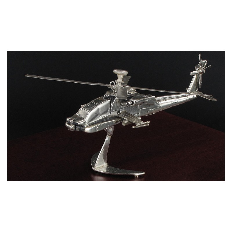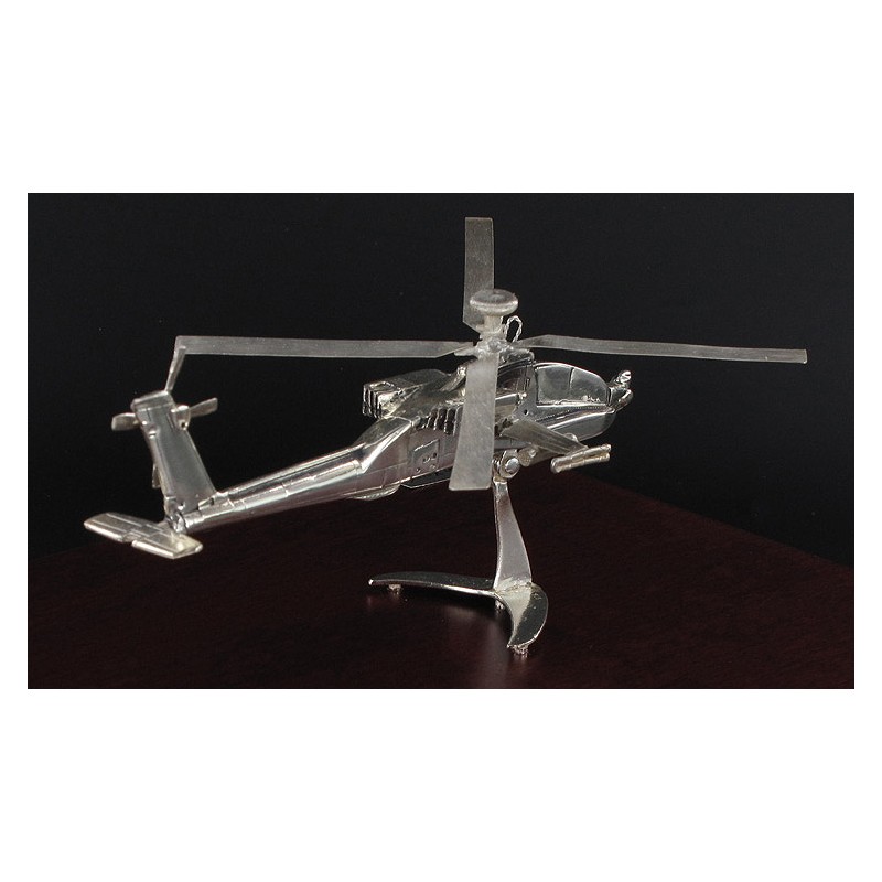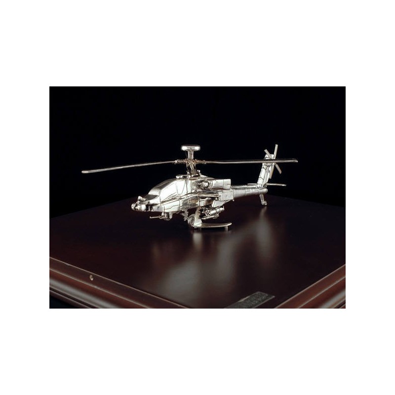 Αντίγραφο Ελικοπτέρου APACHE 1 από φυλλο ασήμιού 925β. Είναι τοποθετημένο σε ξύλινη βάση και καλύπτεται από plexiglas. Ελληνικής κατασκευής