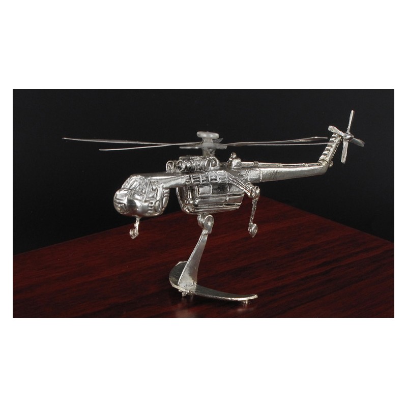 Αντίγραφο πυροσβεστικού Ελικοπτέρου SIKORSKY 1 (S-64)από φύλλα ασημιού 925β ,τοποθετημένο σε ξύλινη βάση , με κάλυμμα από plexiglas.