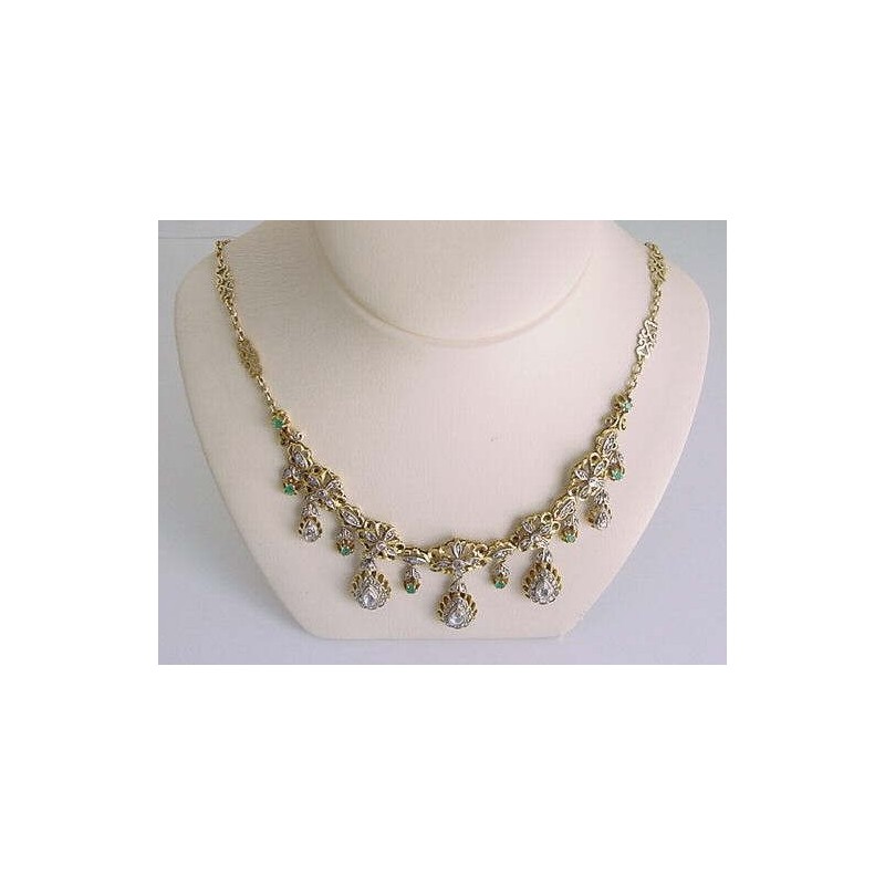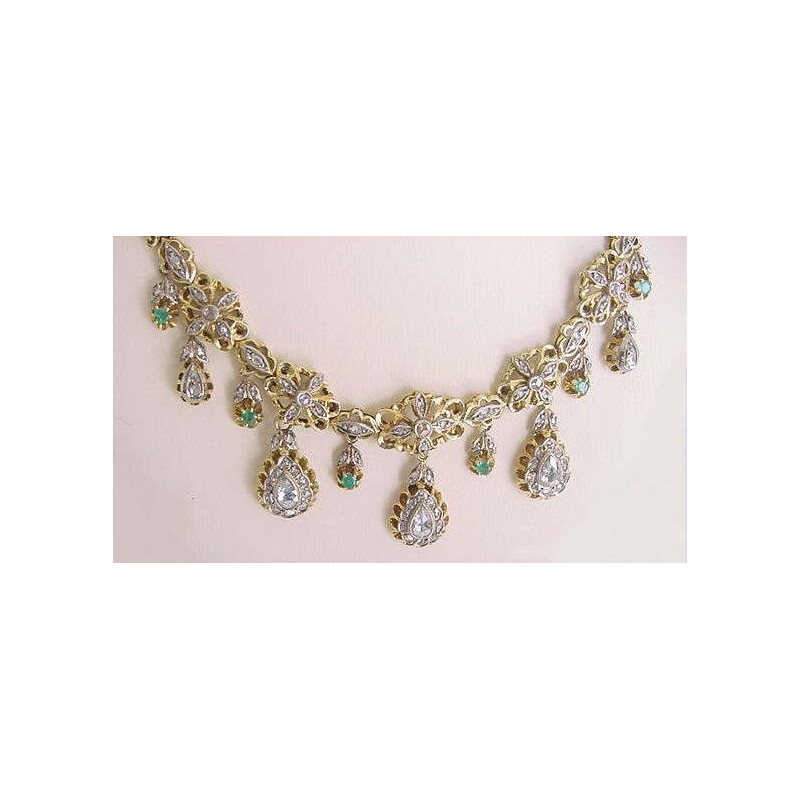 Περιδέραιο από κίτρινο χρυσό Κ18 με 92 Διαμάντια και Μπριγιάν καλής ποιότητος συνολικού βάρους 4,7 ct και 8 Σμαράγδια.