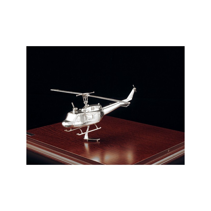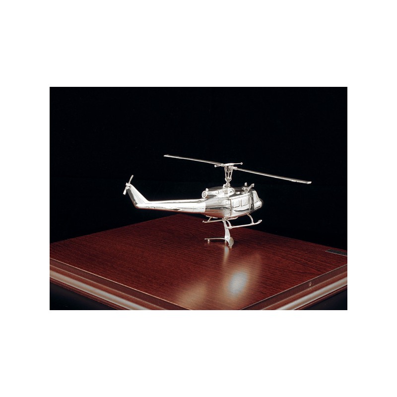 Ασημένιο αντίγραφο Ελικοπτέρου UH-1 (HUEY),κατασκευασμένο από φύλλα ασημιού ,τοποθετημένο σε ξύλινη βάση με κάλυμμα από plexiglas.