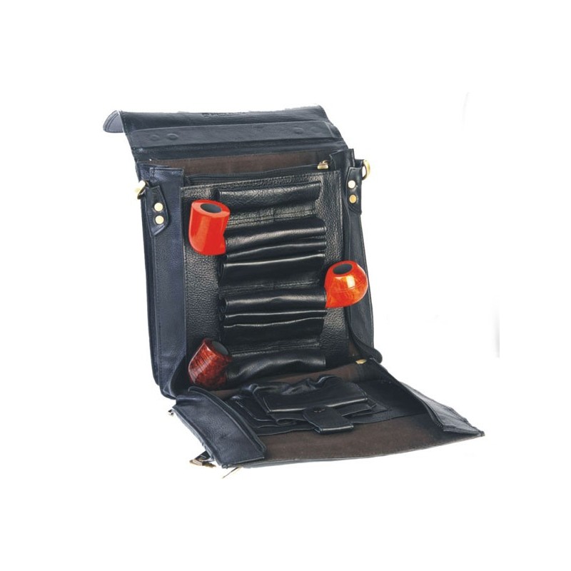 Τσαντάκι για πίπες Pierre Cardin από γνήσιο φυσικό δέρμα , εξωτερικά και εσωτερικά , είναι κατάλληλο για να προφυλάσσει τις πίπες καπνού κατά την μεταφορά τους, να διατηρεί τον καπνό πάντα φρέσκο , διαθέτει θήκες για τις πίπες, για τον καπνό και τα συνοδευτικά εργαλεία της πίπας .