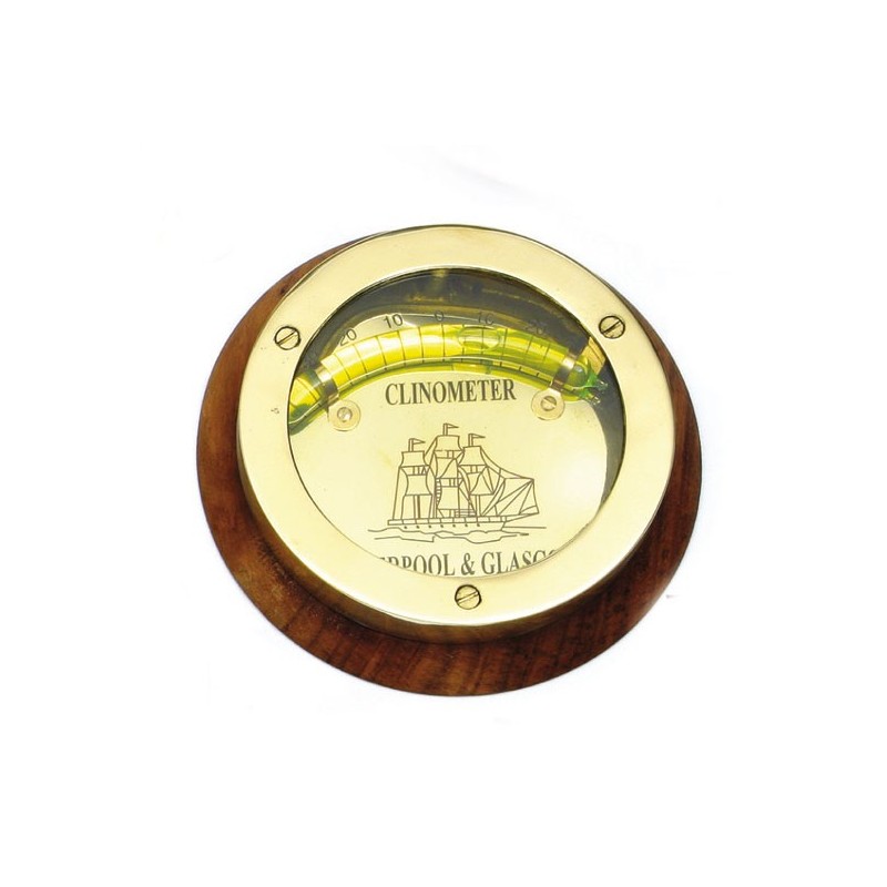 Clinometer από συμπαγή μπρούτζο, χειροποίητο σε ξύλινη βάση.