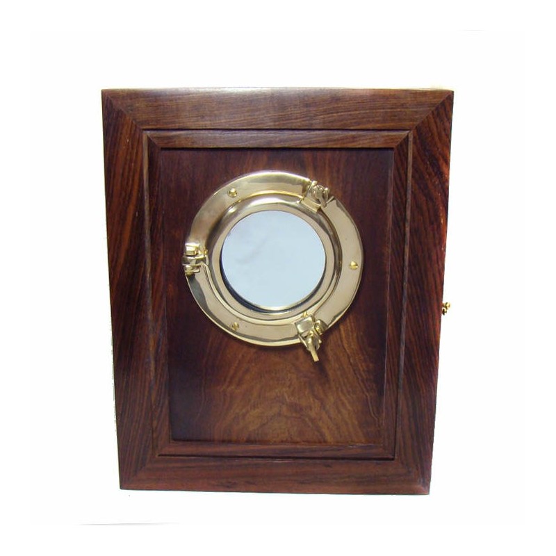Κλειδοθήκη από ξύλο με καθρέπτη σε φινιστρίνι από μασίφ μπρούτζο.