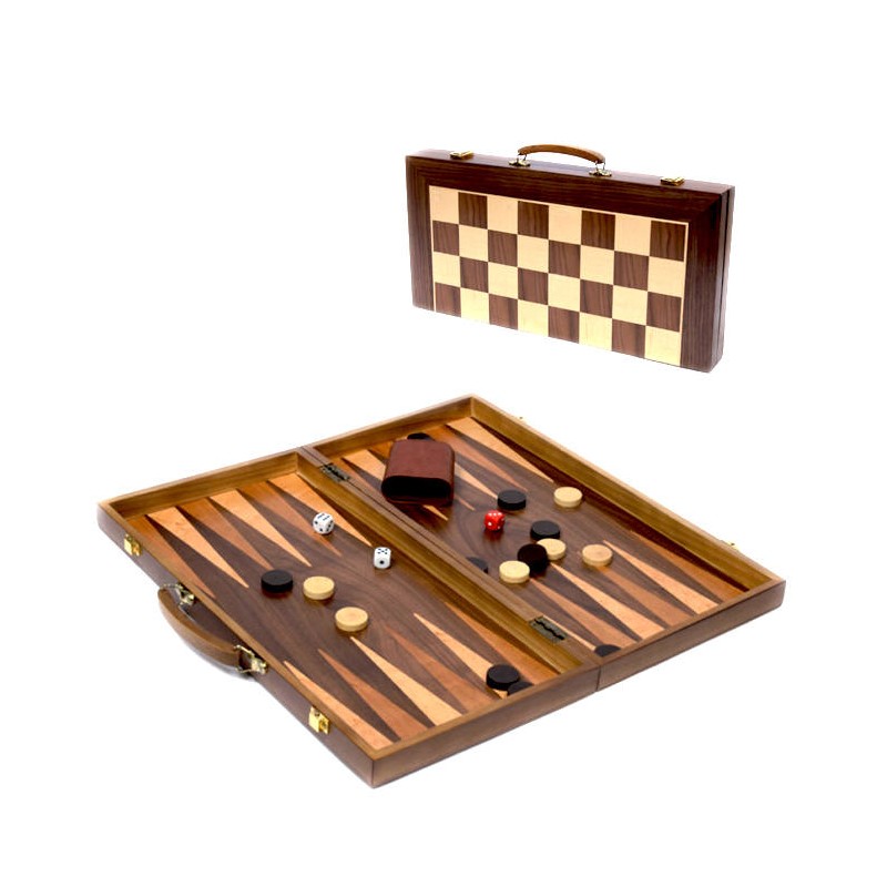 Τάβλι,Σκάκι φορητό, βαλιτσάκι με χειρολαβή για εύκολη μεταφορά. Έχει χειροποίητη σκακιέρα , μαρκετερί από ξύλο καρυδιάς.Εμπεριέχονται πούλια και πιόνια ξύλινα ,ζάρια και δερμάτινο ποτηράκι.