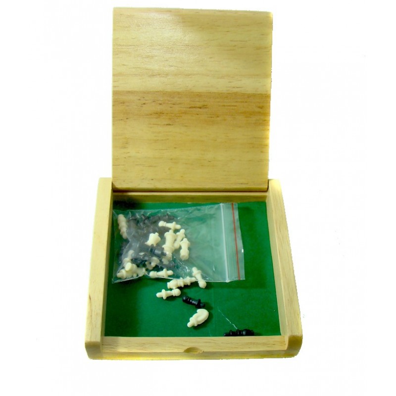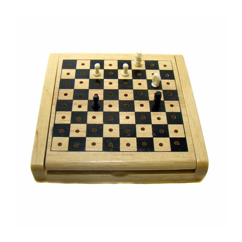 Μικρό Σκάκι ταξιδίου τετράγωνο από ξύλο . Με Πιόνια .