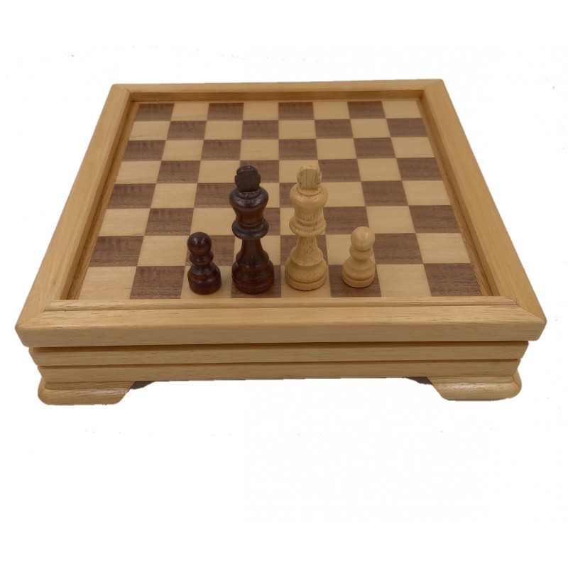 Σκακιέρα ξύλινη,σύνθεση έξι παιχνιδιών ,σκάκι ,τάβλι, ντάμα τράπουλα, κλπ. Διαστάσεις 30 χ30 χ6,5 εκατ.Καρέ 3,0 χ3,0 εκατ και ύψος πιονιών 6,5 εκατ