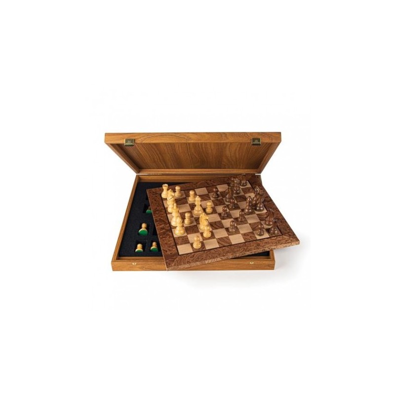 Σκακιέρα ξύλινη Σετ με πιόνια σε ξύλινη κασετίνα από ρίζα Καρυδιάς.